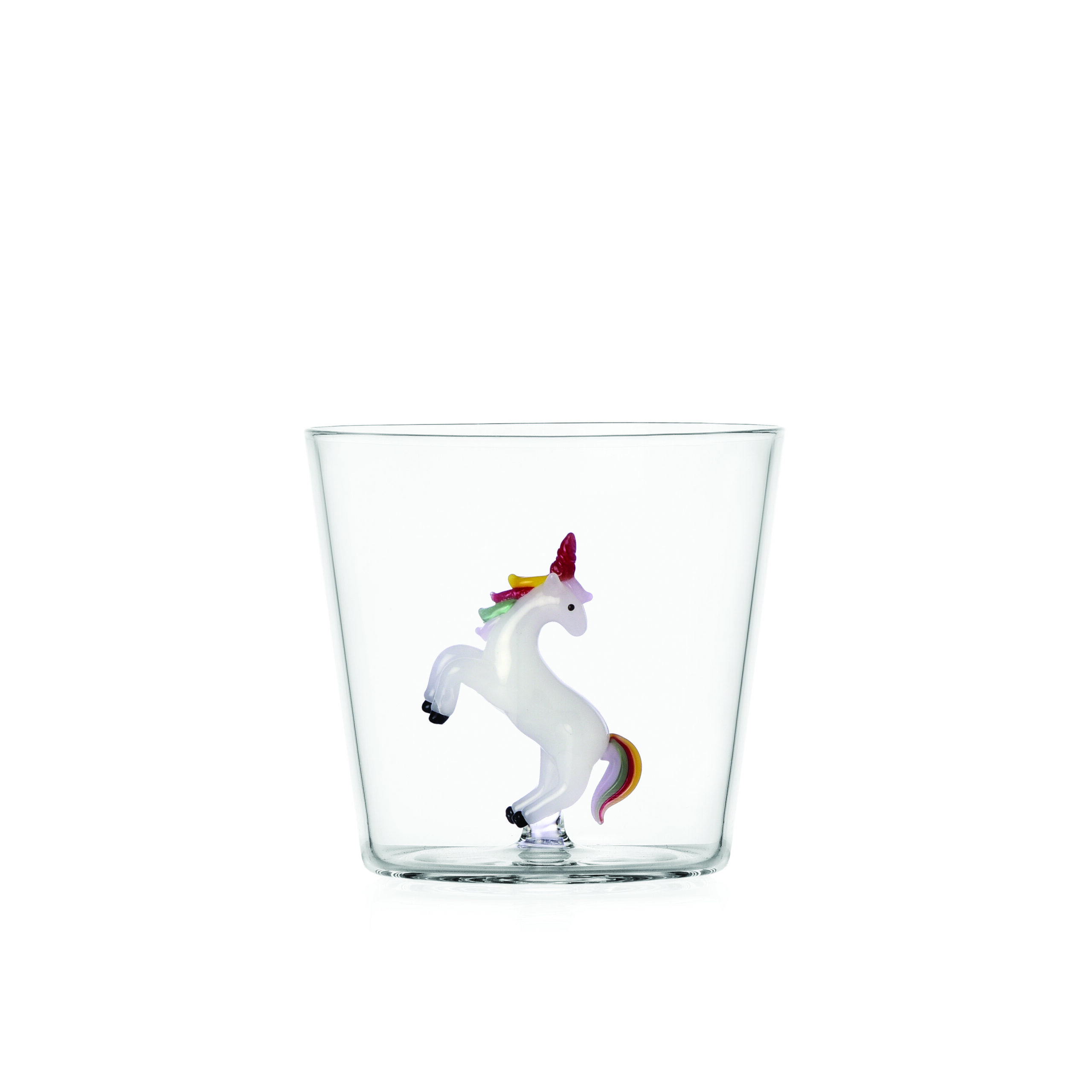 This borosilicate glass tumbler features a magical unicorn in the centre of the glass. Designed by Alessandra Baldereschi, these fun and elegant glasses are sure to bring a smile and festive joy.